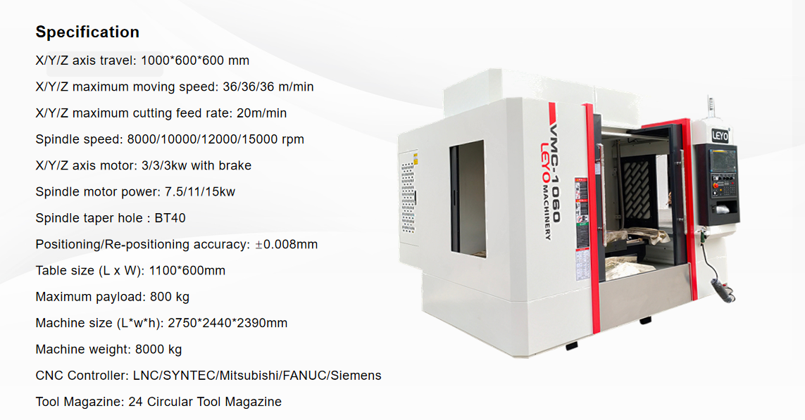 | LEYO VMC1060-VMC1165立式加工中心技术参数 | |||||